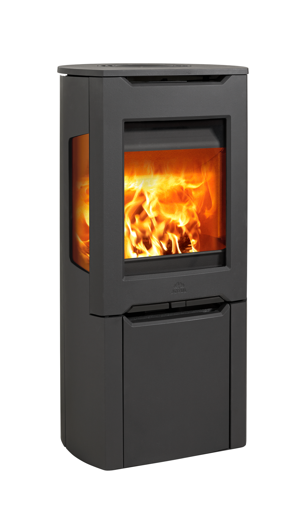 Jøtul F 263 indoor log burner is part of the F 260 series which consists of two types. These are convection wood stoves that are well suited for installation against combustible material. Convection is achieved through an extra outer wall which allows for circulation of air between the combustion chamber and the outer walls. In this way, the temperature on the outside of the wood stove is reduced. Jøtul F 263 has large side glasses and can house an optional companion set behind the door of the base. There is also room for other accessories used in connection with the wood stove behind the base door. If you want extra air circulation, you can install a fan that distributes the heat around the room very efficiently. The wood stove is made for modern living and is suited for low effect heating. It burns at an optimal level even at 3kW.
